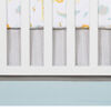 Transform your nursery into a sweet jungle getaway with the Jungle Pals 4 Piece Crib Bedding Collection by Sammy and Lou. This crib bedding set features a giraffe, lion, alligator, elephant, and parrot in a muted color palette of soft aqua, pale yellow, mellow orange, and gray. The quilt is framed with a gray herringbone print. A soft cuddly plush elephant is included in this set and is sure to be your little one's new favorite friend. The set is completed with a cozy coordinating fitted crib sheet featuring a scatter print of the jungle animals, and a lovely crib skirt in the gray herringbone print. This is 4 piece crib bedding set is perfect for any jungle theme nursery! Please adhere to JPMA's Safe Infant Bedding Practices.