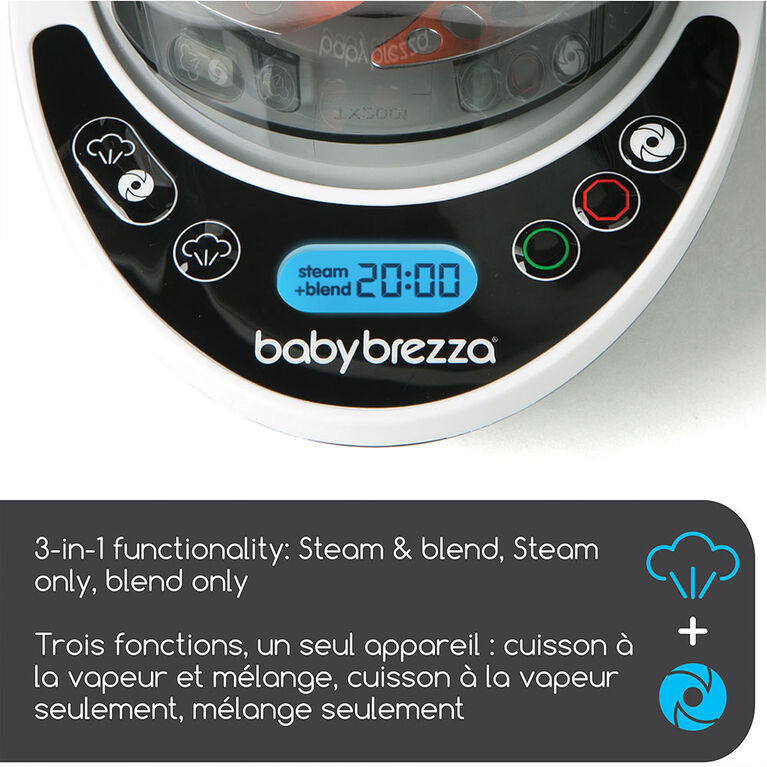 The Baby Brezza One Step Food Maker Deluxe is the easiest way to make homemade baby food. It automatically steams, then blends homemade baby food in one easy step with no transfer after cooking. Makes 3.5 cups / 820 ml of healthy and delicious baby food in as little as 10 minutes. Its easy-to-use LCD Control Panel lets you choose from 3 functions (Steam and Blend; Steam Only; Blend Only) and it includes 3 reusable food pouches and filling funnels so you can easily make, store and serve baby food. BPA-FREE. 1-year limited warranty.