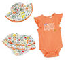 Our breezy tank bodysuit and flowy skirt outfits cools in warm weather, and the sun hat is perfect to help shade her from the sun's rays. Includes one short sleeve bodysuit, one ruffle skirt and one sunhat Bodysuit features comfy crew neck, flutter sleeves and a back placket. Diaper cover features ruffles and gentle elastic waistband 100% Cotton Machine wash / tumble dry