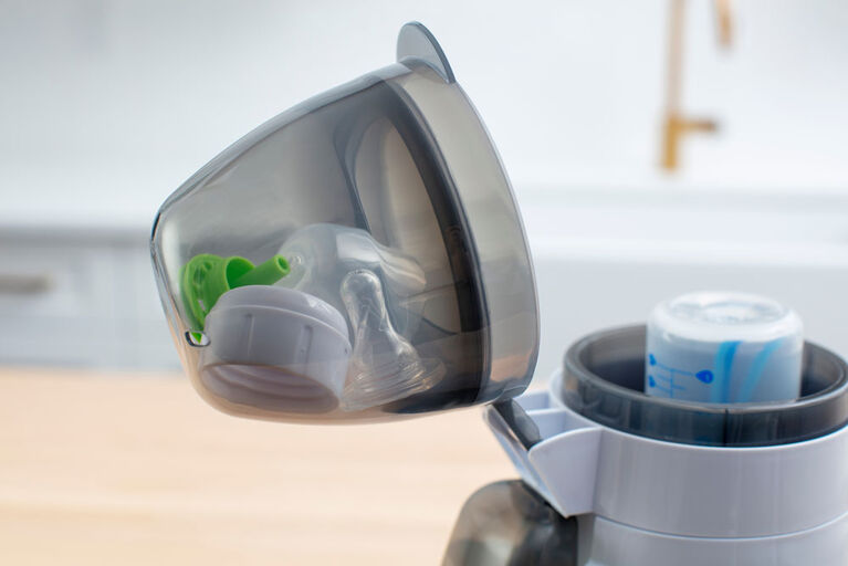 One-button start with last-setting memory for faster warmingAudible alarm with auto-shut off prevents overheatingLarge water reservoir heats several bottles before refillingSafe steriliser cleans 99.9% of household germs from parts, pacifiers, and a whole bottleFits all Dr. Brown's Baby Bottles and most other bottle brands