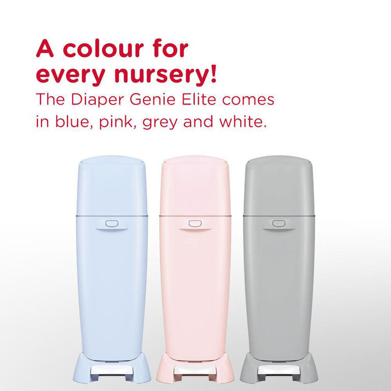 Unlike ordinary household trash cans, the Diaper Genie Elite Diaper Pail - Designer White helps keep unpleasant smells where they belong. Our Double-Lock design and 7-layer bag helps keep odours from escaping, so your nursery stays new-baby fresh. Diaper Genie Elite now comes with Diaper Genie Carbon Filters to help tackle the strongest diaper odours. These filters are made with safe, natural activated carbon that locks in odour molecules rather than just masking odour with fragrance. Handling stinky diapers is a dirty job, but with almost 60 years of caring for babies, we're well equipped to handle it. Diaper Genie is the #1 selling diaper pail brand.