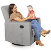 RELAXATION AND COMFORT, UNLIMITED: With ergonomic backrest support, multiple reclining positions, comfortable side rests, 360° swivel, and smooth gliding and rocking motions, the Raleigh is designed to provide full comfort to your body. TOOL-FREE ASSEMBLY AND EASY-TO-USE RECLINING MECHANISM: Setting up Raleigh is easy and requires NO TOOLS! Simply push back against the backrest for a comfortable recline. Use the easy-to-reach lever to control the footrest. BEAUTIFUL FINISHES FOR EVERY ROOM: It comes in sophisticated colors to choose from, a calm Fawn, sophisticated Greys, pleasing Light Blue, to charming Lilac. Finishes that will blend seamlessly into your nursery, bedroom or study!STRONG BUILD: The Raleigh is Greenguard Gold Certified and has a solid metal base that easily supports 360-degree swivel rotation and gliding capabilities. It is covered with an easy-to-clean durable polyester fabric with foam filling and has convenient side pockets. The Raleigh weighs 84 lbs and has a weight capacity of 250 lbs. Product dimensions are 31″ L x 32″ W x 39″ H inches. KEY SPECS: It meets all CA TB117-2013 flammability requirements and has a 1-year Limited Manufacturer's Warranty. This glider is sustainability-conscious and crafted with FSC Certified Wood. FSC (Forest Stewardship Council) Certifications recognize that the wood is ethically-sourced, ensuring the safety of our forests, environment, wildlife and human rights. The wood used in our Chairs is ethically sourced and is kiln-dried.