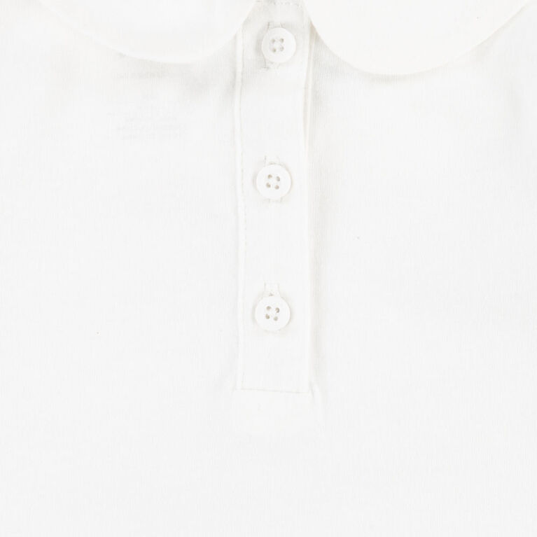 Dress your little original in signature style easily with this 2-piece set by Levi's. The tee is made of soft jersey knit fabric that feels gentle on baby's sensitive skin, has a Peter Pan collar with button closures on the back, short sleeves and contrast lettuce trim at the sleeves and hem. The skirtall is made of cotton denim and has straps that crisscross at the back. The top features a rainbow print, has an empire waist with an elasticized back and a roomy A-cut that makes layering easy.