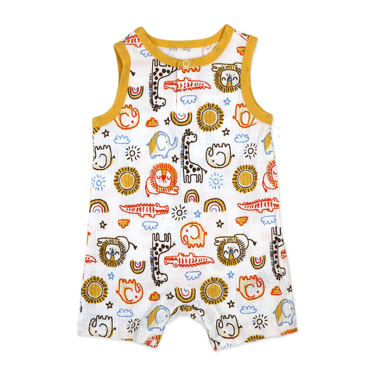 Mini Hop Rib Romper with Sunglasses:Yellow Zoo Animals
