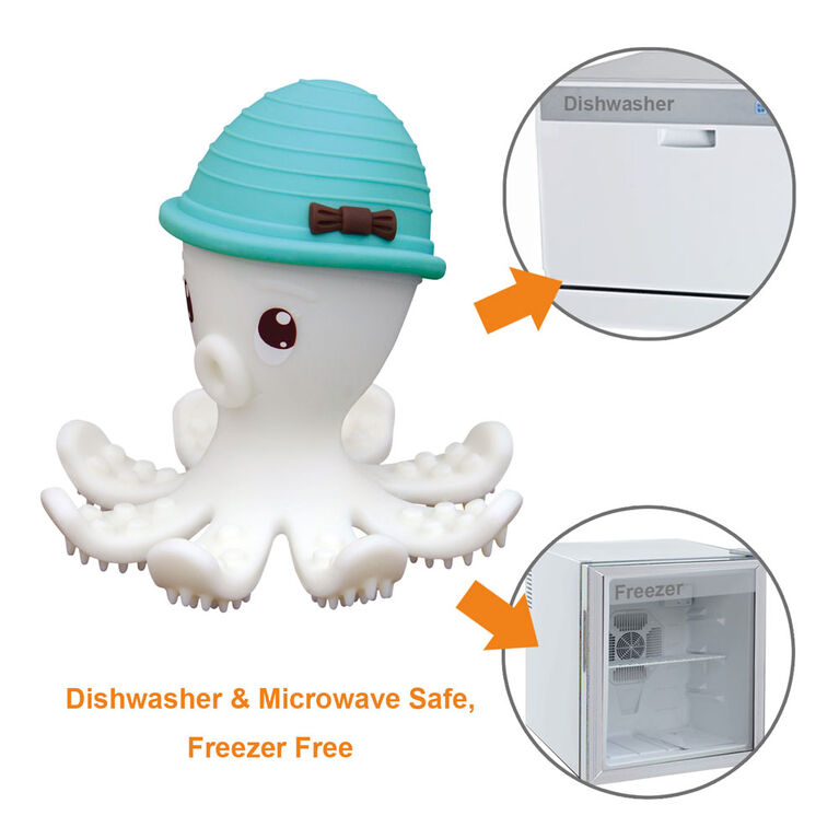 Invented by a dental hygienist mom, The Mombella Octopus is the world's first 3D hollow silicone teether toy. The Mombella Octopus is a teether and a playmate for babies & toddlers. The Hollow structure is light weight and easier for baby to hold. Very durable construction made of 100% food grade silicone.