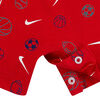 This all-in-1 by Nike is made of soft jersey knit fabric that feels gentle on baby's sensitive skin and is finished with an allover graphic print. A ribbed crewneck, short sleeves, mock kangaroo pocket and snap closures at the back neckline and inseam makes changing and dressing easy.