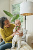 Super-soft silicone ridges and bumps gently clean baby’s teeth and gums and the flat suction base keeps the training toothbrush in an upright position for convenient countertop storage. Curved handles help little fingers maintain a good grip as they gnaw and practice brushing, promoting motor and independent brushing skills. The peapod teether features multiple textures to massage baby’s sore gum, helping with teething discomfort and promoting tongue exploration. Refrigerate the teether to give baby cooling comfort on extra sore days.
