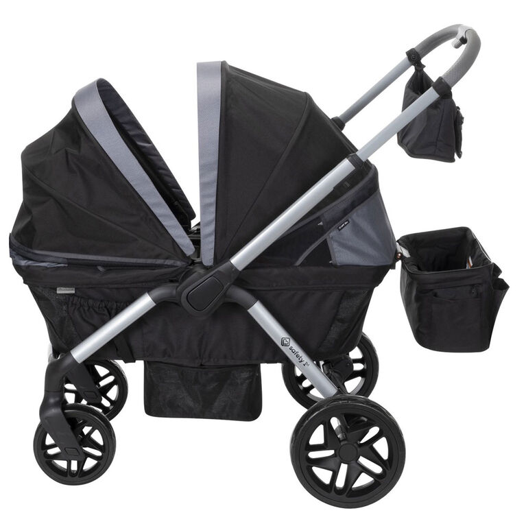 <span itemprop="description">I'm extremely impressed with the Safety 1st Summit Wagon Stroller. This stroller is easy to maneuver and offers a 360 view for my children. It can seat two of my toddlers facing each other. Unlike my previous double stroller, this one is lightweight, sturdy and super easy to turn in all directions. As a busy mama on the go, this is very appreciated. This stroller has many convenient features such as a snacking tray with 2 cupholders, an awesome dual-canopy that shades from the sun, storage space with a large basket, plush seats, three-point harness, and adjustable handlebar. The stroller was easy to assemble and took less than 15 minutes. I really appreciate how well the stroller moves on all types of terrain - rock, grass, pavement, hill etc. We take frequent trips to the park and this was easy to maneuver even in rocky areas. The stroller is super easy to clean and fold. The only thing it is lacking is a cup holder for myself. I bring water with me everywhere, so I would've appreciated a cup holder. Nonetheless, this stroller is packed with many convenient features, is affordable, very sturdy and high-quality. I can tell it will last a long time and I definitely recommend it! I received this product through the Stellar Product Testing Panel.</span>