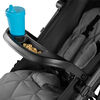 • Additional features: child snack tray, large storage basket, smooth glide wheels, auto lock, parent cup holder, cell phone holder, 5-point safety harness, adjustable recline and leg rest, child cup holder, padded carry strap