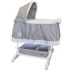Recouvert d'un joli tissu gris et muni d'un volant orne d'un adorable motif a pois, ce berceau Bily s'harmonise avec tous les decors. De plus, il est facile a transporter dans la maison pour vous permettre de toujours avoir votre tout-petit a proximite.