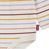 Haut à manches longues en jersey doux avec col rond et nœud collé. Body confortable avec fermeture à bande pour un enfilage et un retrait faciles. Jolis volants sur les épaules. Détail en trou de serrure avec fermeture boutonnée à l'arrière. Salopette en satin indigo extensible confortable, bretelles croisées dans le dos, jambes évasées, taille élastique douce et poches.