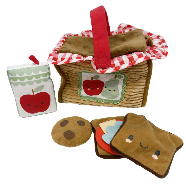 Le set de jeu Pique-nique de Carter's permet à votre enfant d'exercer ses compétences en matière d'alimentation en "faisant" un sandwich tout en "sirotant" son jus. Cet ensemble de 8 pièces comprend une mallette de transport avec des aliments sympathiques rangés à l'intérieur. L'ensemble de pique-nique comprend 2 morceaux de pain grillé, 1 boîte de jus de fruits, 1 biscuit et 1 tranche de tomate, de fromage et de laitue. Idéal pour encourager l'imagination des petits !