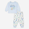Rococo ens.2mcx haut et pantalon pour garçons. Haut à manches longues avec encolure et poignets côtelés. Épaules croisées pour un habillage facile et illustration imprimé sur le devant. Pantalon imprimé avec taille élastique et poignets côtelés pour plus de confort. Garde votre tout-petit chaud et confortable. Tissu : 100 % Coton BCI