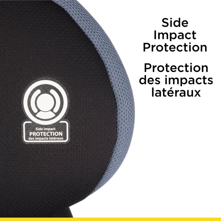 Le siège d'auto conçu pour GRANDIR pour une utilisation prolongée tout au long des 3 étapes : Orienté vers l'arrière de 2.3 à 18.1 kg (5 à 40 livres), face vers l'avant de 10 à 29.5 kg (22 à 65 livres) et siège d'appoint avec positionnement de la ceinture de 18.1 à 45 kg (40 à 100 livres). Housse de siège lavable à la machine et allant dans la sécheuse, s'enlève facilement pour un nettoyage vraiment facile. 2 Porte-gobelets amovibles, lavables au lave-vaisselle Harnais QuickFit pour un réglage facile du harnais et de l'appui-tête en une seule étape Harnais à 5 points à réglage frontal Protection d'impact latéral Supports de harnais: avec le harnais retenu vers l'arrière, il est facile d'installer et de retirer votre enfant du siège. L'inclinaison à 3 positions facilite l'ajustement dans votre voiture La Barre Anti-Rebond rembourrée (BAR) ajoute une mesure de sécurité supplémentaire en mode face à l'arrière en empêchant le siège d'auto de tourner excessivement en cas d'arrêt brusque ou de collision. Répond ou excède toutes les normes de sécurité réglementaires canadiennes et comprend une garantie limitée d'un an. Équipé d'un Système d'Ancrage Universel (SAU) pour une fixation et un retrait rapide du siège d'auto ertifié pour une utilisation à bord des avions lorsqu'il est utilisé avec le harnais interne.