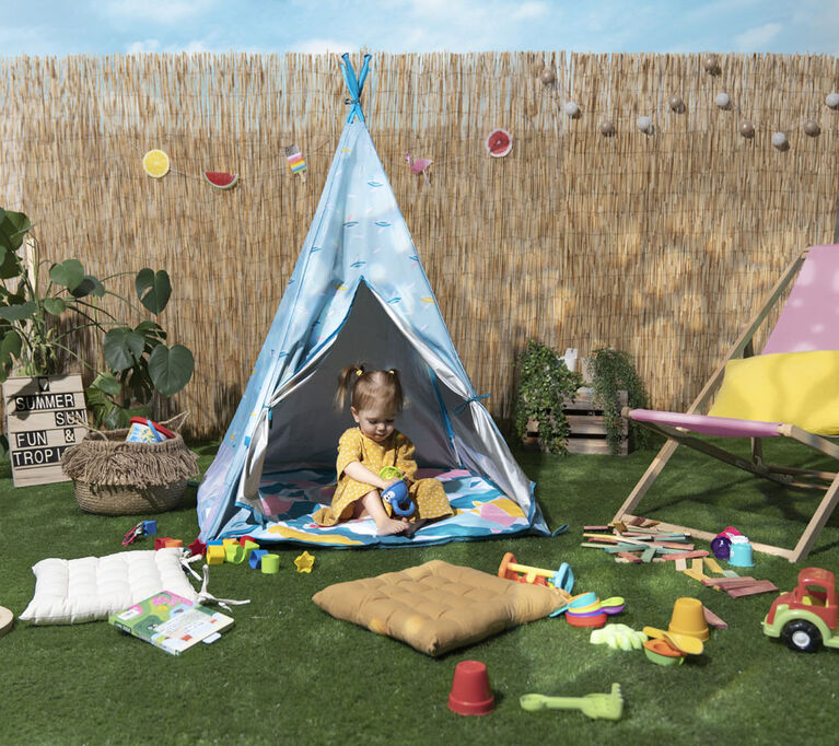 Fûté, le tipi Jungle est une grande aire de jeux dans laquelle votre enfant joue en toute sécurité. Que ce soit dans sa chambre, dans votre jardin ou à la plage, votre enfant joue, se repose, s'éveille et se cache dans ce tipi haut en couleurs. Futé, en 5 minutes chrono il est installé. Ce tipi pour enfant protège des rayons nocifs du soleil avec sa toile anti-UV FPS 50+